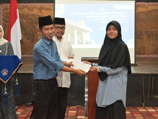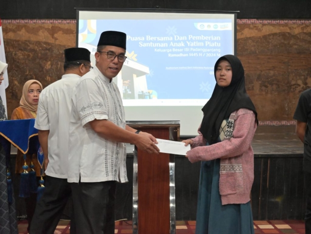 Padangpanjang, 3 April 2024 – Keluarga Besar Institut Seni Indonesia (ISI) Padangpanjang menggelar acara berbuka puasa bersama serta memberikan santunan kepada anak yatim piatu sebagai bagian dari upaya untuk berbagi kebahagiaan dan keberkahan di bulan Suci Ramadhan. Acara yang digelar di Auditorium ISI Padangpanjang dihadiri oleh seluruh civitas akademika, staf, dan mahasiswa ISI Padangpanjang. Kehadiran dalam acara ini memperlihatkan semangat kebersamaan dan kepedulian dalam membantu sesama, terutama bagi mereka yang membutuhkan.