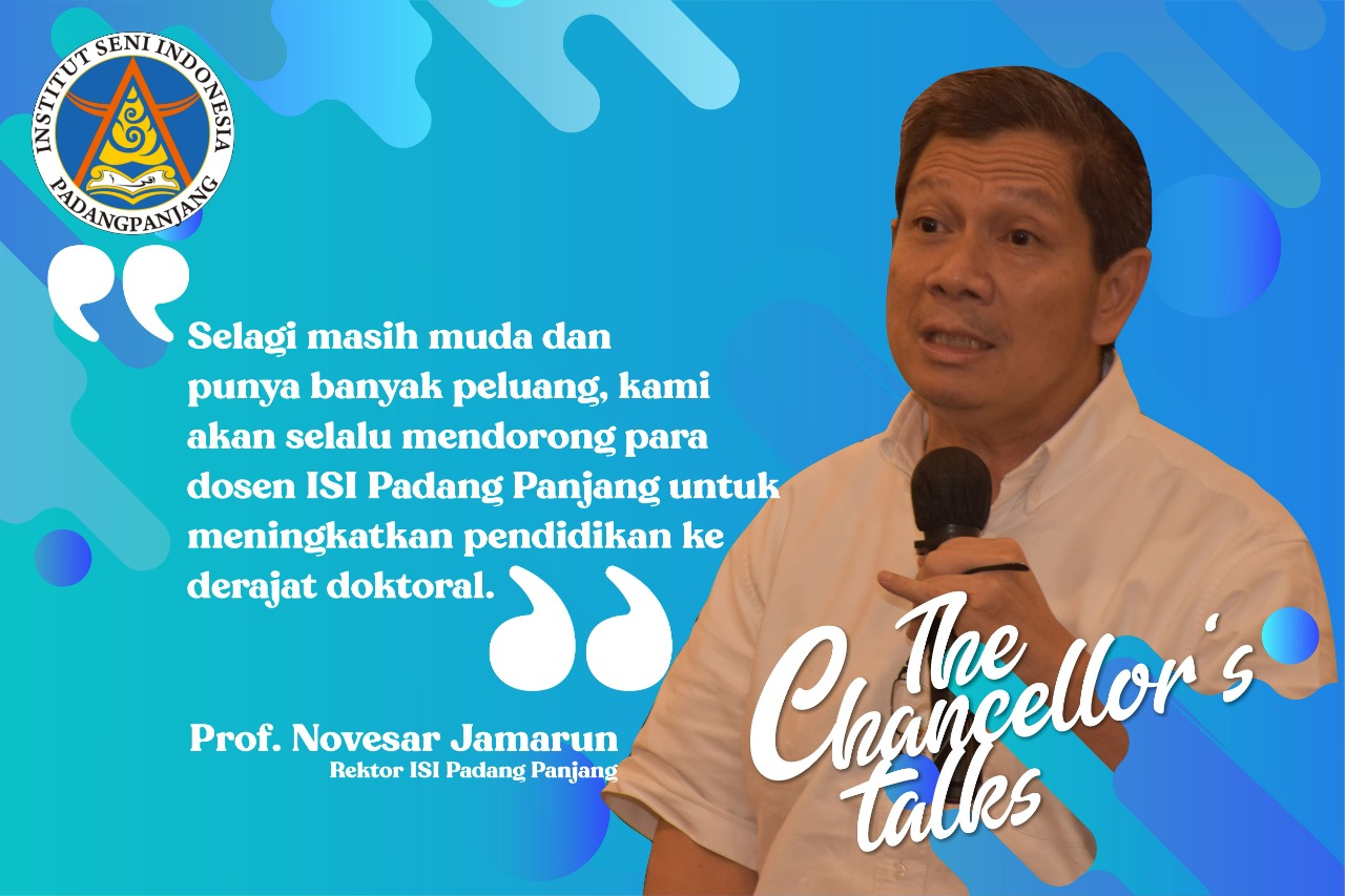 Dalam kata sambutannya rektor ISI Padang Panjang Prof Novesar Jamarun menegaskan pentingnya bagi para dosen untuk meningkatkan pendidikan ke derajat doktor. “Dari kampus sendiri kami sudah siapkan skema pembiayaan. Bagi mereka yang dinyatakan lulus di perguruan tinggi yang dituju, akan diberikan bantuan sebesar Rp 15 juta berikut uang buku,” katanya. Dorongan seperti ini menurut rektor adalah bentuk keseriusan pimpinan dan lembaga dalam menyokong semangat para dosen.