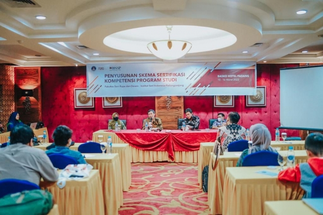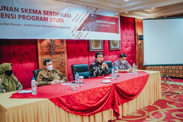 Padangpanjang. Dalam rangka menghasilkan lulusan berkompetensi, Fakultas Seni Rupa dan Desain ISI Padangpanjang melaksanakan kegiatan Penyusunan Skema Sertifikasi Kompetensi. Kegiatan diselenggarakan selama 2 hari tanggal 15-16 Maret 2022 dengan narasumber Komisioner bidang skema Sertifikasi BNSP Bapak Drs. Mulyanto., M.M,