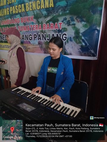 Di Jorong Tanjung Mutiara, Tanah Datar, tim yang dibimbing Dr. Eva Riyanti memulai kegiatan dengan koordinasi intensif bersama Wali Nagari dan Ketua Jorong sebelum mendampingi anak-anak melalui aktivitas menggambar, permainan, dan ruang ekspresif yang membantu meredakan kecemasan.