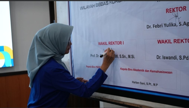 Sebagai bentuk komitmen nyata, kegiatan ini dilanjutkan dengan penandatanganan Komitmen Pembangunan Zona Integritas oleh Rektor, Wakil Rektor, dan Kepala Biro. Penandatanganan ini menjadi simbol kesiapan ISI Padangpanjang dalam melaksanakan reformasi birokrasi di seluruh unit kerja serta memperkuat sistem pengawasan internal.