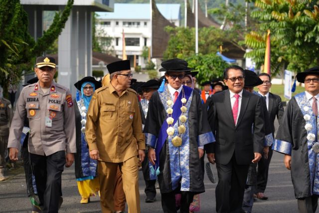 Acara wisuda kali ini juga menghadirkan orasi ilmiah dari Bupati Padang Pariaman, H. John Kenedy Azis, S.H., M.H., dengan tema “Komitmen Pemerintah Daerah pada Seni Budaya dan Kesempatan Kerja.” Kehadiran beliau sebagai orator menjadi simbol sinergi antara perguruan tinggi, pemerintah daerah, dan dunia kerja dalam membangun ekosistem seni dan budaya yang berkelanjutan.