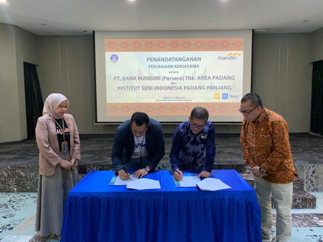 Padang – 20 Juni 2025 Institut Seni Indonesia (ISI) Padangpanjang resmi menjalin kerja sama strategis dengan Bank Mandiri. Penandatanganan nota kesepahaman ini dilaksanakan di Gedung Bank Mandiri Area Padang, lantai 2, Kota Padang. Kegiatan ini menjadi langkah penting dalam memperkuat sinergi antara institusi pendidikan tinggi dan sektor perbankan nasional.
