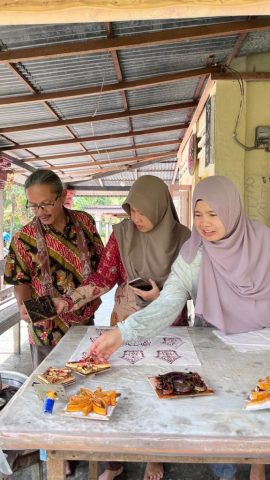 - Desi Trisnawati, S.Sn., M.Sn mengajarkan teknik cap batik dari karton sebagai solusi efisiensi produksi di sentra Batik Anggreni Eka.