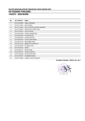 [ct_button id=”button_4″ size=”small” solid=”1″ link=”https://www.isi-padangpanjang.ac.id/wp-content/uploads/2020/08/143_PESERTA_LULUS.pdf” icon=”” arrow=”1″ color=”#” css_animation=”” animation_delay=””]Download Peserta Lulus[/ct_button]
