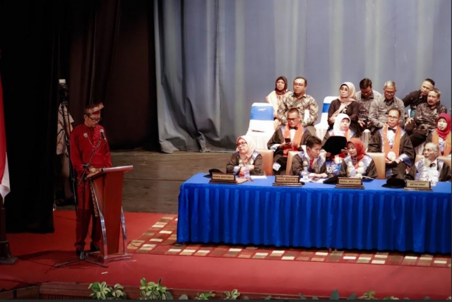 Selanjutnya Rektor ISI Padangpanjang, Dr. Febri Yulika,S.Ag., M.Hum menyampaikan pidato dan berpesan “Saya berpesan jasa-jasa para dosen yang telah mendidik saudara, jasa – jasa orang tua yang telah mendukung dan mesupport saudara untuk sampai ketitik ini”, ujarnya. Teruslah berkarya, mengisi kehidupan, belajar menyikapi masalah dengan bijak sehingga saudara dpata senantiasa meningkatkan kepemimpinan serta memperkuat solidaritas, demi adab yang baik, demi memberikan sumbangsih yang nyata bagi bangsa Indonesia.
