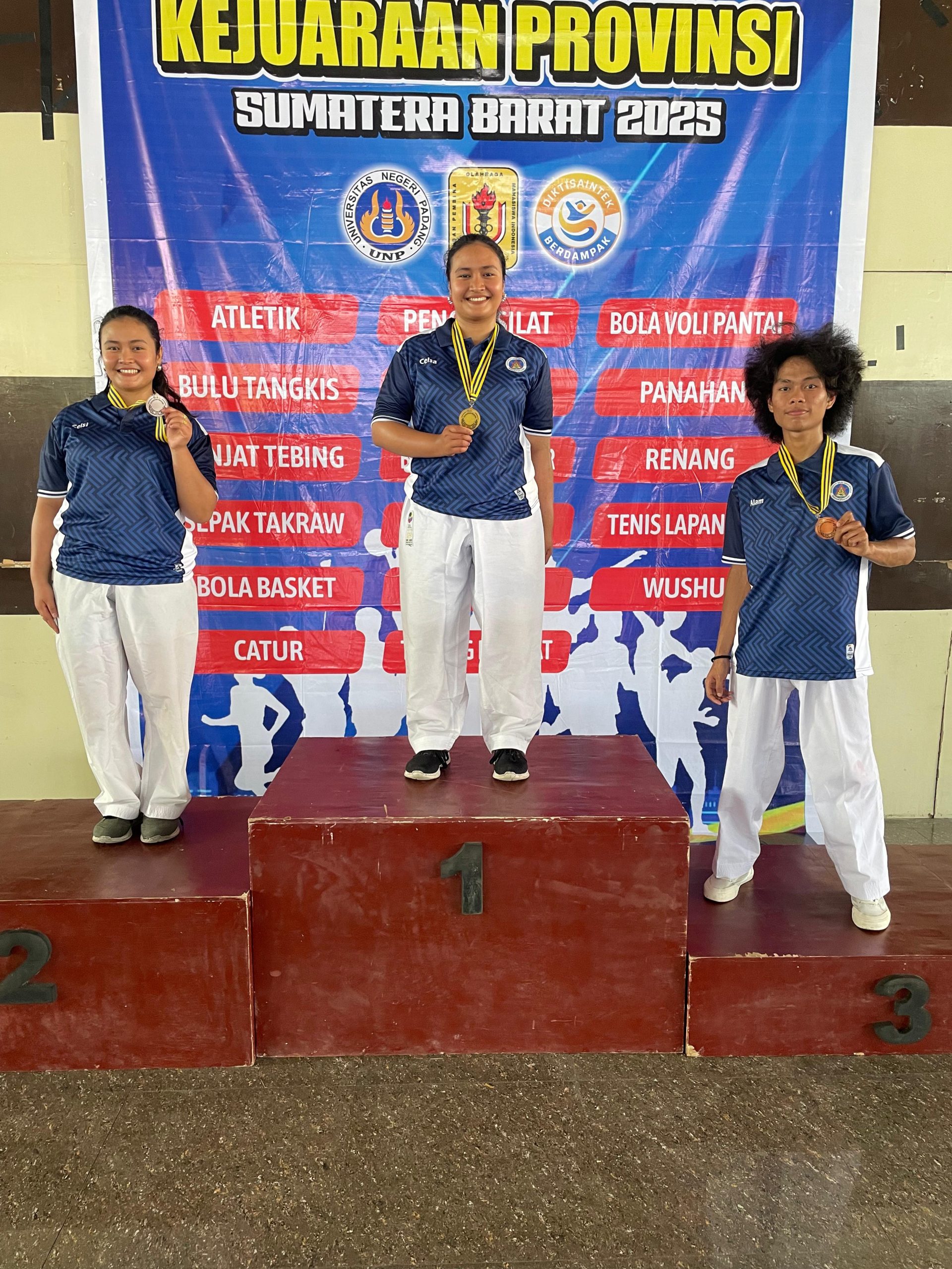 Dua mahasiswi dari Program Studi Seni Tari, yakni Celsa Novia Biwis dan Celsi Novia Biwis, menunjukkan kemampuan bela diri yang luar biasa. Celsa berhasil meraih medali emas , sementara Celsi menyusul dengan medali perak . Penampilan keduanya membuktikan bahwa mahasiswa seni tak hanya unggul di atas panggung pertunjukan, tetapi juga mampu bersaing secara tangguh di arena olahraga.